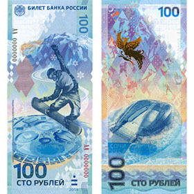 Банк России 30 октября выпустил в обращение сторублевые банкноты, посвященные Олимпийским играм в Сочи. Тираж памятных банкнот — 20 млн экземпляров, сообщается на сайте ЦБ.