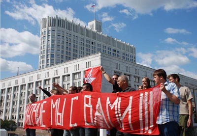 6 августа около 12.30 представители Левого Фронта провели несанкционированное шествие у стен Дома Правительства РФ на Краснопресненской набережной. Активисты Левого Фронта развернули транспарант «Рабочие, мы с вами!», зажгли дымовые шашки и прошли вдоль здания Белого Дома, скандируя «Уволить Правительство, рабочих защитить!», «Даешь рабочий контроль!», «АвтоВАЗ - национализировать!», «Рабочие не должны платить за кризис!»