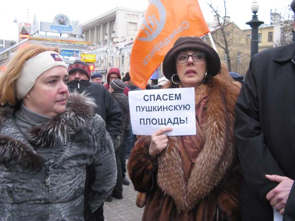 6 декабря в Москве на Чистопрудном бульваре у памятника Грибоедову состоялся митинг «Спасем Пушкинскую площадь!» Акция, в которой приняли участие около 150 человек, была организована общественным движением Московский Совет при поддержке политических организаций - Левый Фронт, СД «Вперед», РКРП-РПК, ЛевСД, «Солидарность», ОГФ, «Нация свободы» и других. Участники митинга держали в руках плакаты «Сохраним Пушкинскую площадь!», «Нет принятию незаконного Генплана!» и скандировали «Руки прочь от Пушкинской площади!», «Лужкова - в отставку!», «Это наш город!».