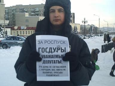 13 января 2013 года в Магнитогорске прошли одиночные пикеты «За роспуск Думы! За отмену закона подлецов!».