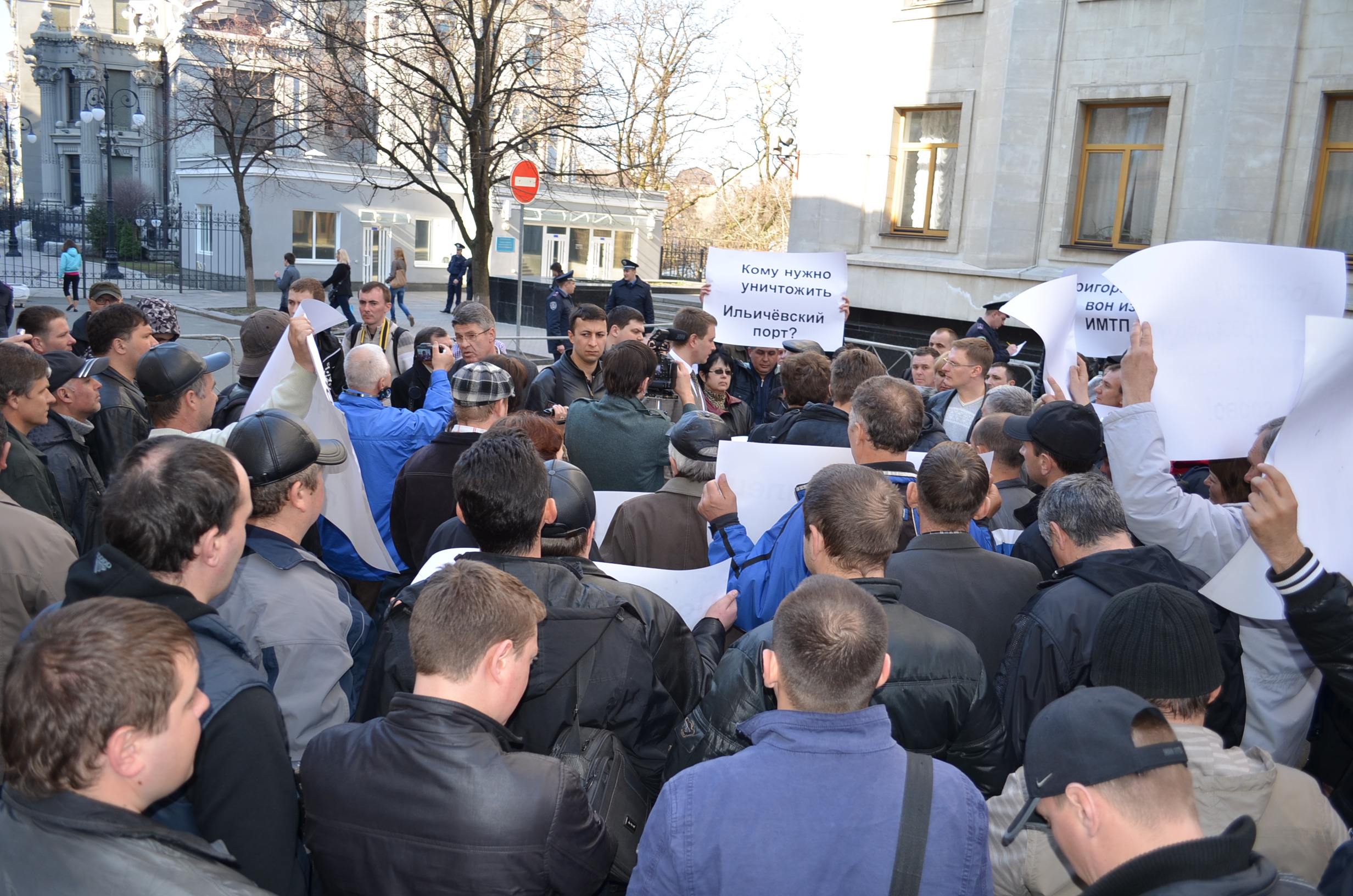 Участники акции пришли с плакатами: «Кому нужно уничтожить Ильичевский порт?», «Порт – кормилец людей и государства», «Господин Президент, скажите свое слово!», «Григорашенко – вон из ИМТП!», «Ильичевские портовики против банкротства» и другие.